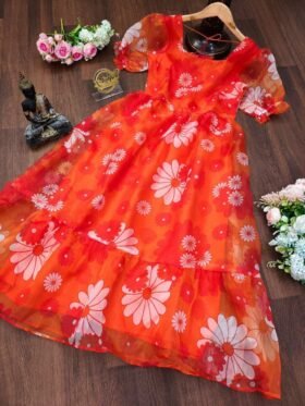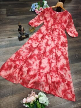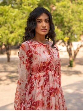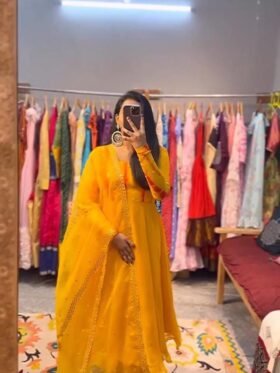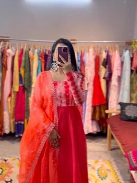 KURTI– Anarkali Have Embroidery work On Neckline Work With Matching Pant And Printed Dupatta.