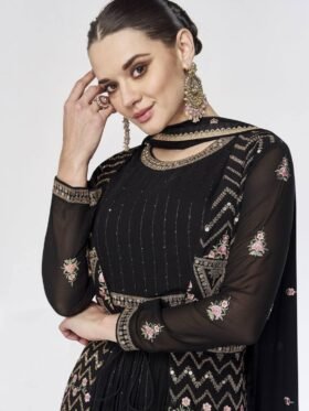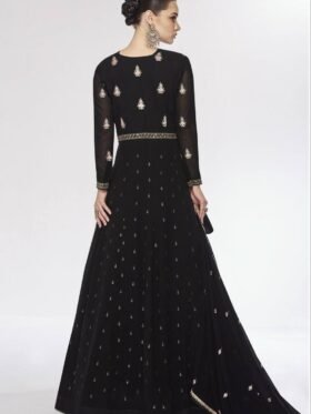 Gown-Black Rangoli Georgette Fabrics And Work With Dupatta