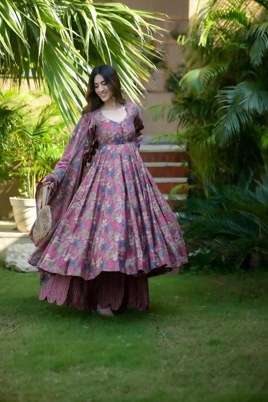 Anarkali-Anarkali Fabric Muslin Adds warmth and comfort Non Wone For stiffness at bottom With Dupatta