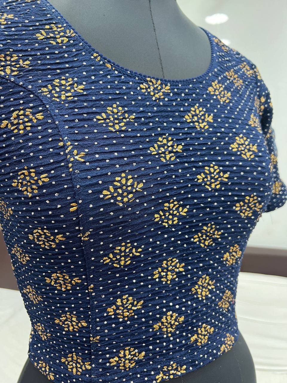 BLOUSE- READY TO WEAR STRETCHABLE CRUSH WITH FOIL PRINT BLOUSE -COLOUR-NAVY BLUE