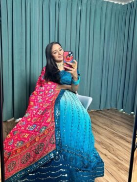 Gown- Bemberg georgette Fabrics with heavy border work Dupatta