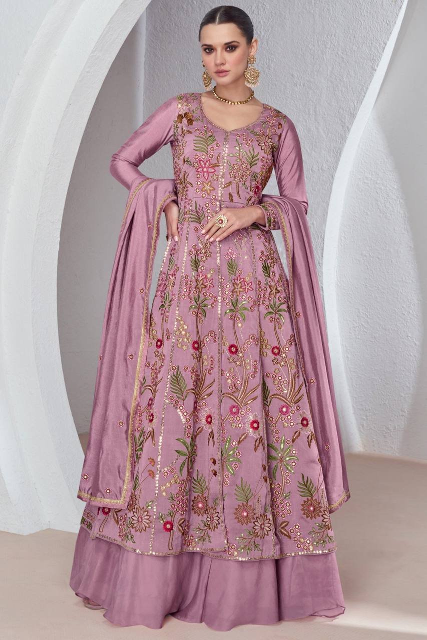 Gown-Viscone Silk Fabrics And Embroidery Work Gown