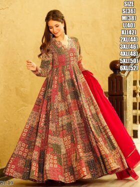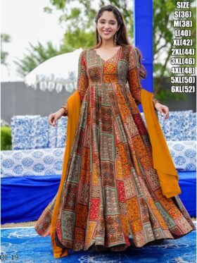 Gown- Stunning Beautiful Digital Printed Ethnic Wear Fully Flared Gown Set