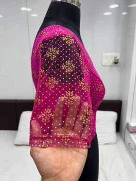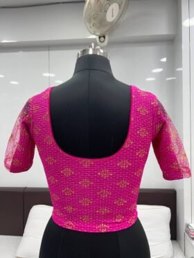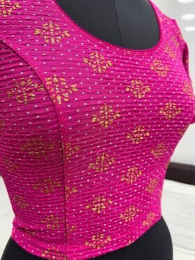BLOUSE- READY TO WEAR STRETCHABLE CRUSH WITH FOIL PRINT BLOUSE -COLOUR-PINK