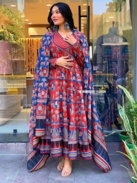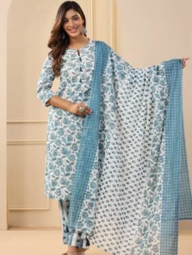 Kurta Pent With Organza Dupatta Set & Embroidery Work SIZE:S,M,L,XL,XXL