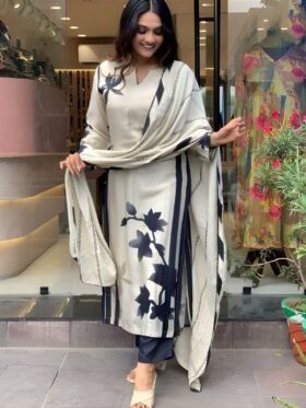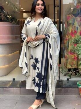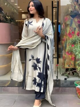 Kurti And Pant With Dupatta-: Pure Chinnon with Heavy Embroidery Coding Dori-Sequence Work with Beautiful Digital Print and Real Hand Mirror Work with Full Sleeve Kurti With Pure Chinnon with Embroidery Coding Dori-Sequence Work with Lace Border Dupatta
