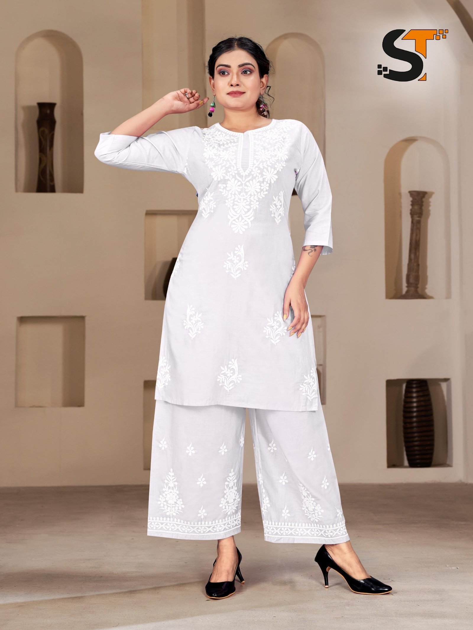 Embroidery Work kurti+Plazzo for Office and Regular Wear_