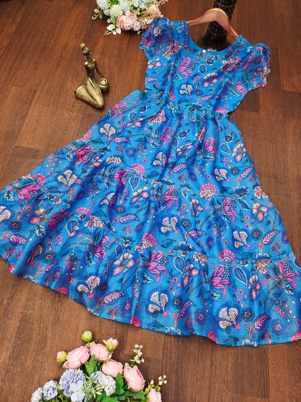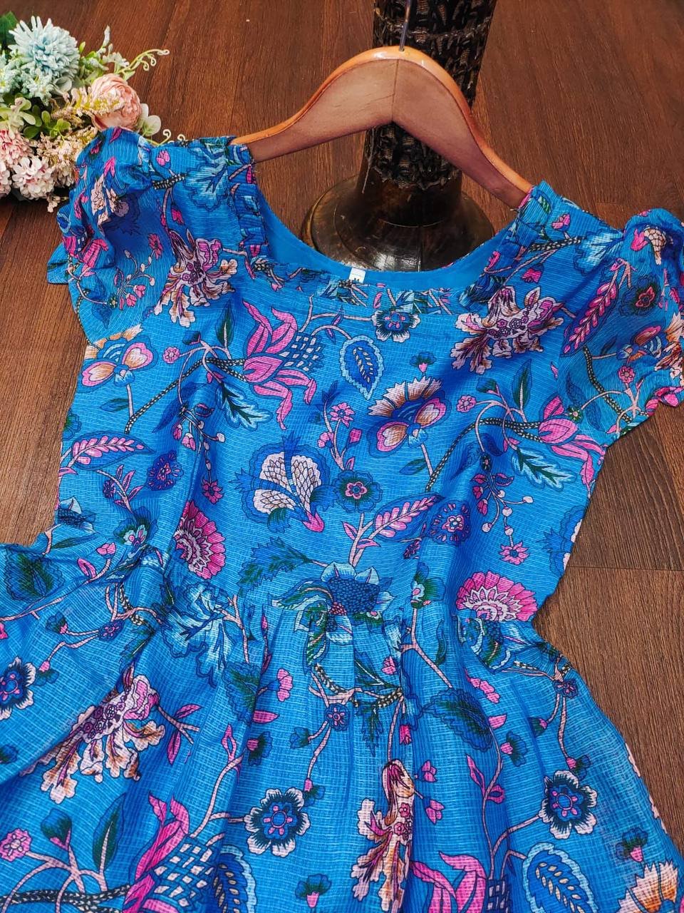 This Frock is the perfect vibe for festivals and parties, designed for those who are always ready to up their fashion game, Crafted from digital print Kota fabric with full lining, it combines style and comfort effortlessly.