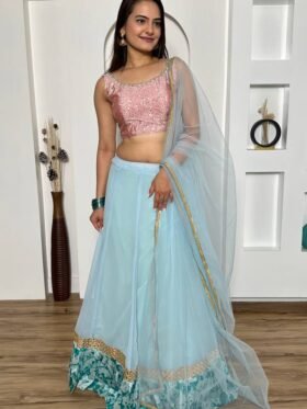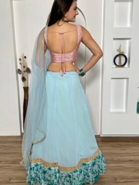 Lehenga Choli- Georgette lehenga with Shibori print border Lehenga Choli