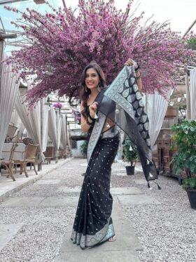 Saree-Banarasi Soft Silk Fabrics And Silver Zari Weaving Saree