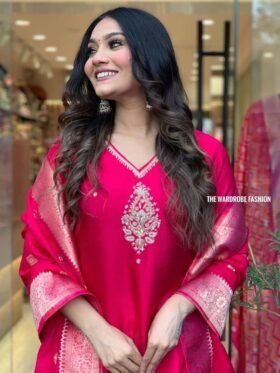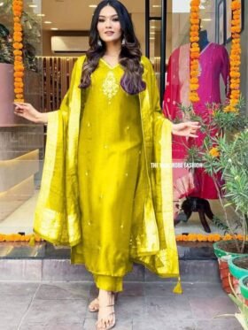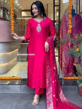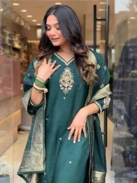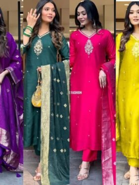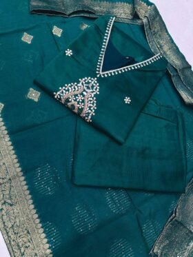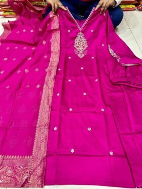 Kurti Pant And Dupatta-Beautiful Heavy quality Banana Silk Fabric With original mirror and Handwork with lining Kurti