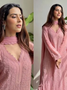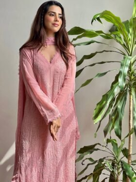 Featuring Solid georgette Gown with finely curated digital Embroidery Dupatta! This is made for simple casual dressing with subtle detailing! Hurry, get yours now! The dress has mirror all-around