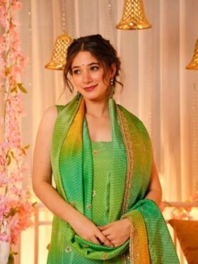 Kurti Pant And Dupatta- Pure Chinon Silk Fabrics And Multi Needle With Coding and 3mm Sequins Embroidery work.