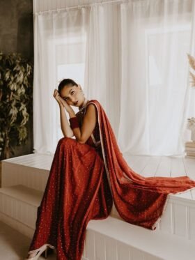 GOWN- JARI DORI CODDING WITH SEQUENCE EMBROIDERY STICH WORK GOWN WITH HEAVY FOX GEORGETTE WITH SWAROVSKI STONE WORK DUPATTA