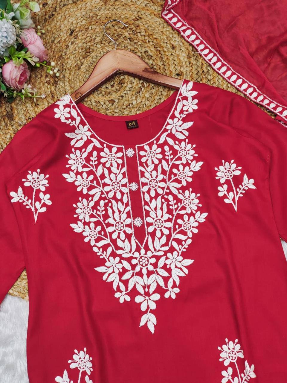 Featuring Four beautiful colors! Made from soft rayon fabric, it features a fully embroidered kurti and a delicate Nazneen dupatta. The rayon palazzo adds comfort, while the 3/4 sleeves complete the traditional look. Perfect for any special occasion, this outfit is as stylish as it is comfortable