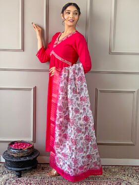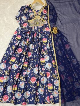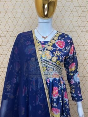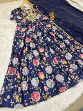 Gown-PURE CHINON FABRICS AND EMBROIDERY SEQUENCE WORK WITH DIGITAL PRINT
