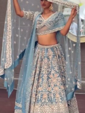 Lehenga Choli- HEAVY FUAX GEORGETTE FABRICS AND HEAVY EMBROIDERED SEQUENCE WORK LEHENGA CHOLI