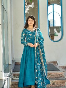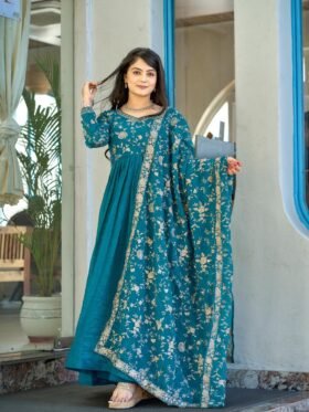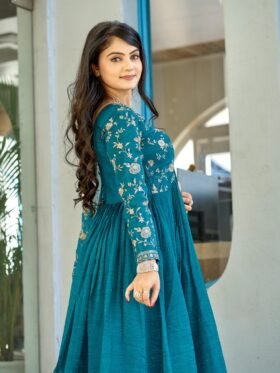 GOWN-PURE CRUNCHY FABRICS AND HEAVY EMBROIDERY WORK AND FULL SLEEVE GOWN