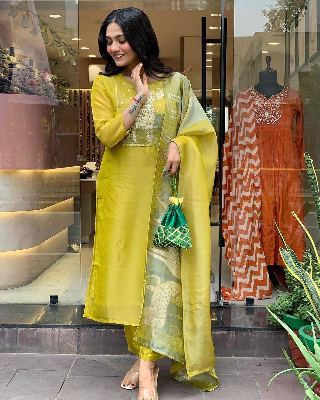 Featuring smoothing yet Roman satin fabric with print & work and full lining with silk pent and dupatta with embroidery work lace & Haevy Sequence coding work Elegant printing with Color. Multiprint and pettern. It is a perfect outfit for any small gathering or function. It is very comfortable as it looks