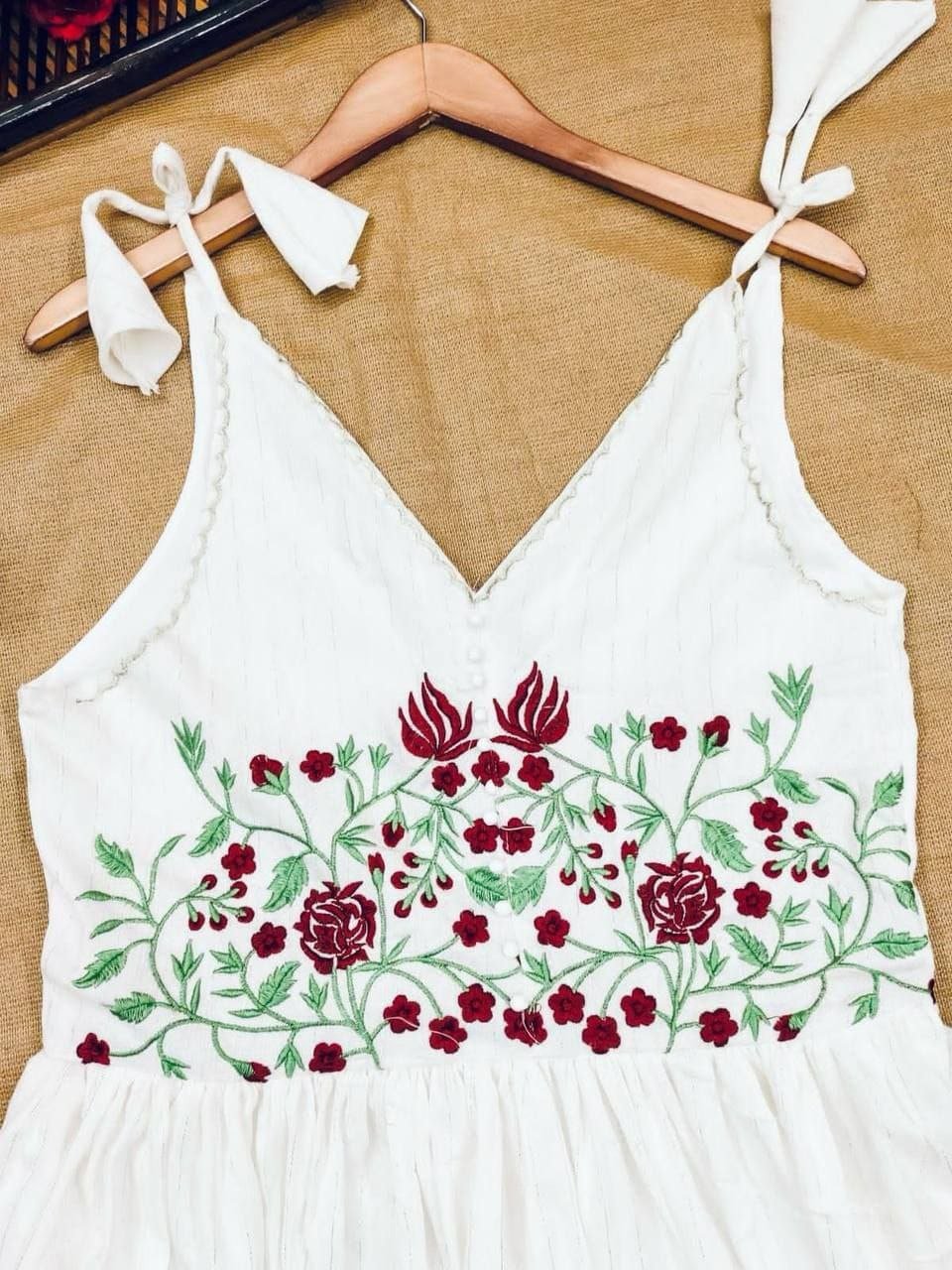 It Has Beautiful Handcrafted yok of Red Roses Which Is A Perfect Fit For Festive Occasions.