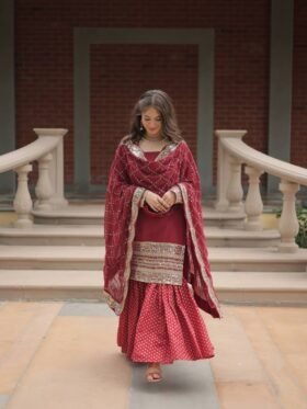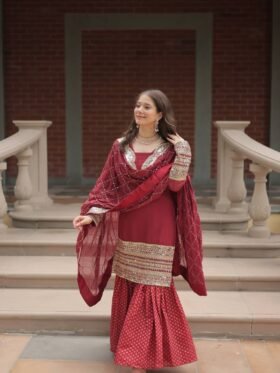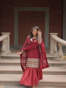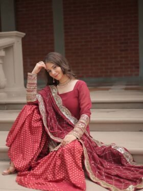 Kurti Pant And Dupatta Set – Viscose Chanderi Fabrics And Embroidery Work Kurti With Pure Linen Dupatta