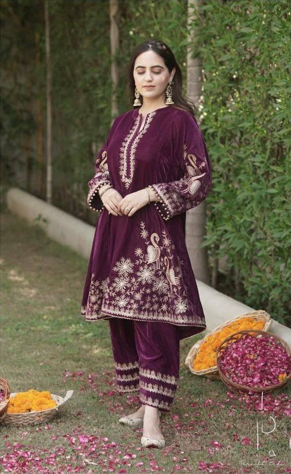 Kurti Pant With Dupatta- Havy Viscose Velvet Fabrics And Embroidery Work