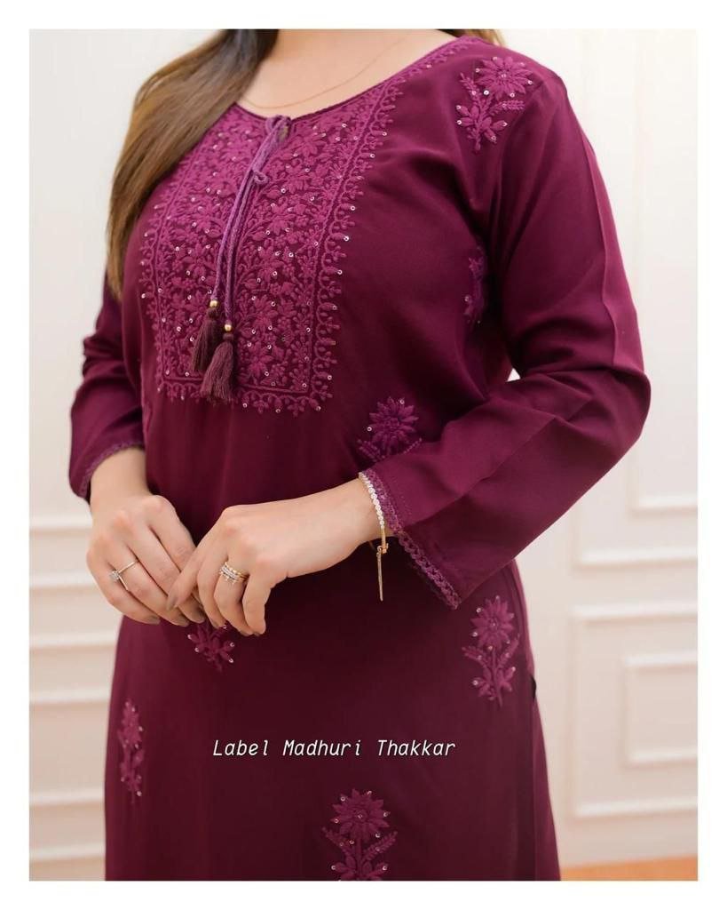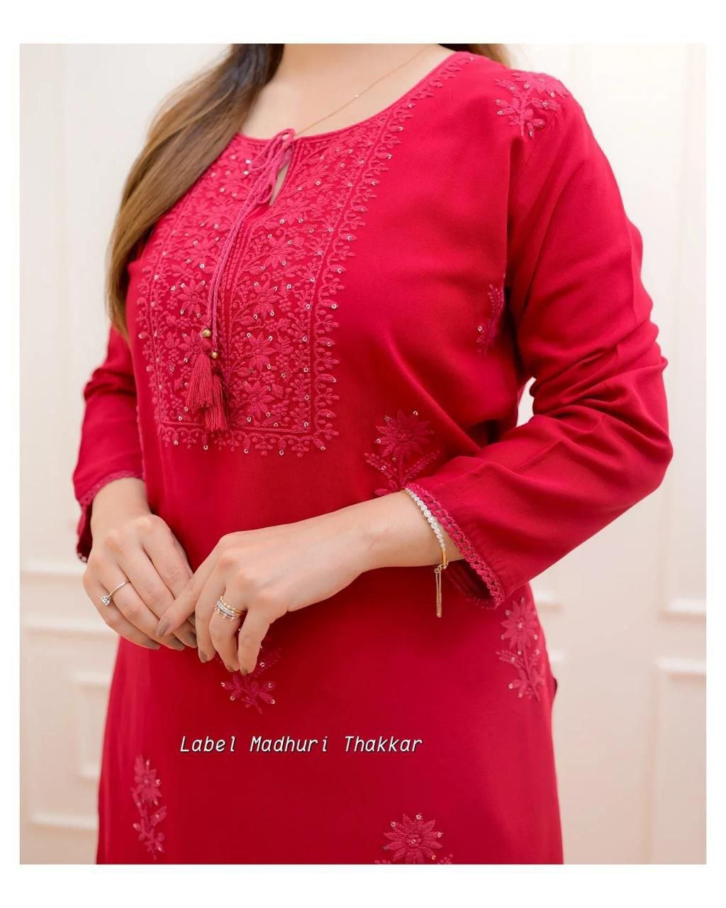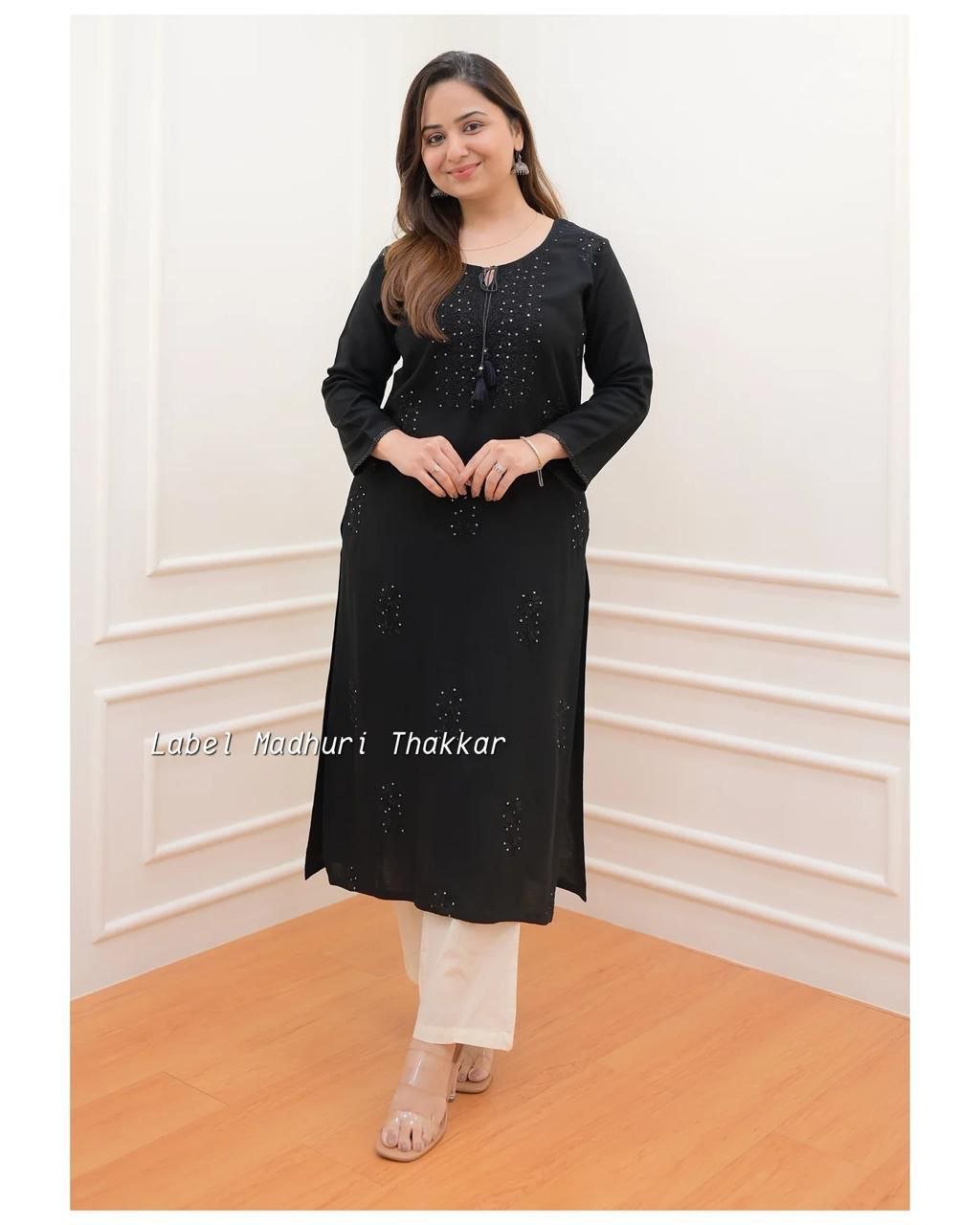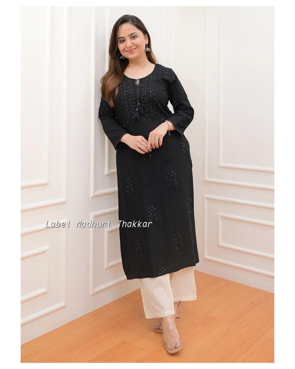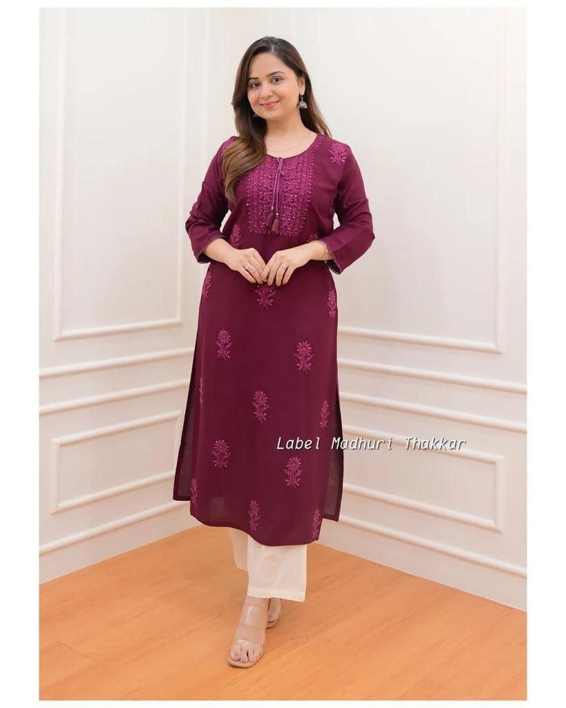 Premium Reyon cotton Top with beautiful sequence embroidery work on yoke & Reyon pent
