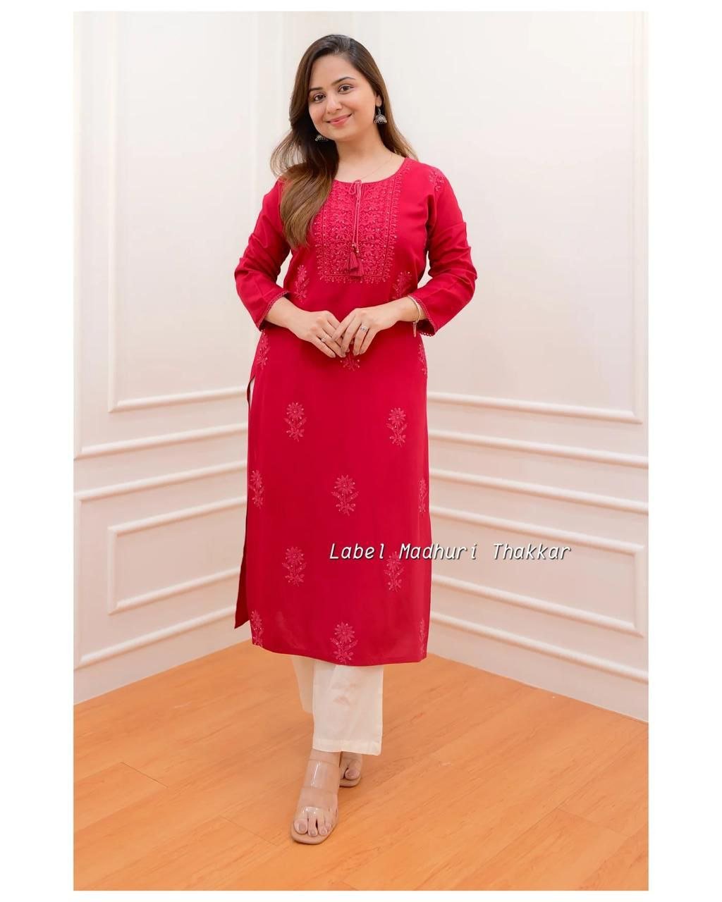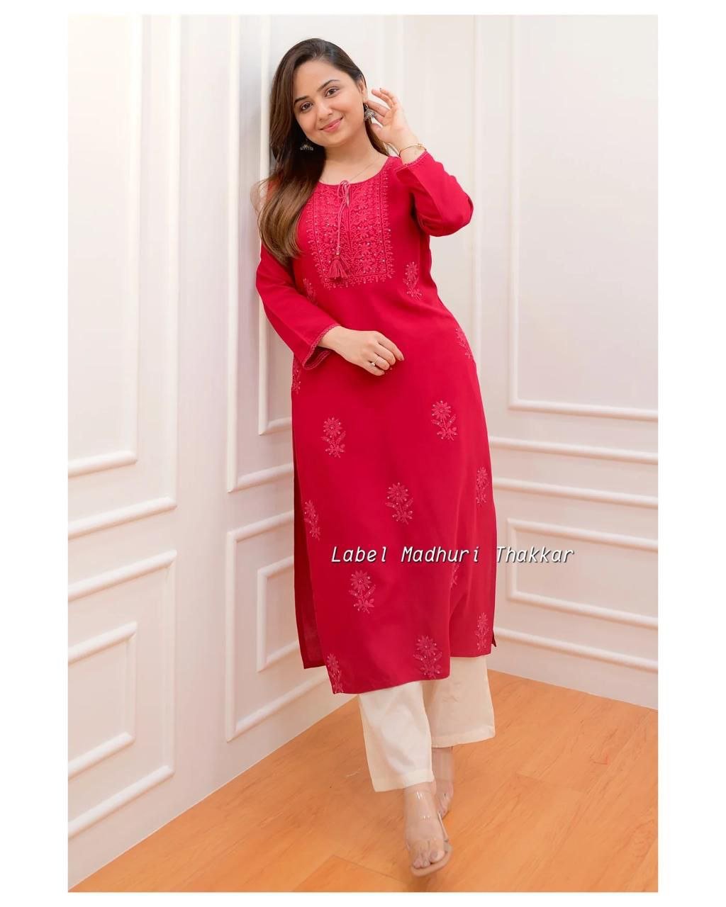A Kurti-style top and palazzo pants made from rayon fabric will give your outfit a super comfortable, breathable, and easy-to-wear vibe! Rayon is soft, lightweight, and perfect for a relaxed yet stylish look. Here’s how you could style it.