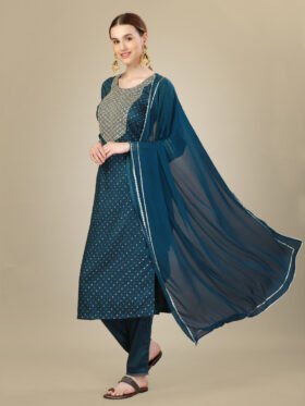 Kurti Pant Dupatta Set- Silk Blend with Embroidery & Sequence Work Kurti With Dupatta