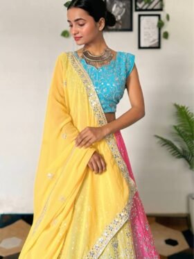 Lehenga Choli- Faux Georgette with Embroidery Sequence Design Work Lehenga