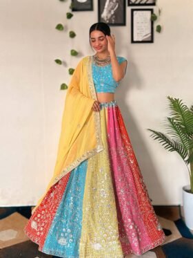 Lehenga Choli-Faux Georgette And Thread Sequence Work Lehenga