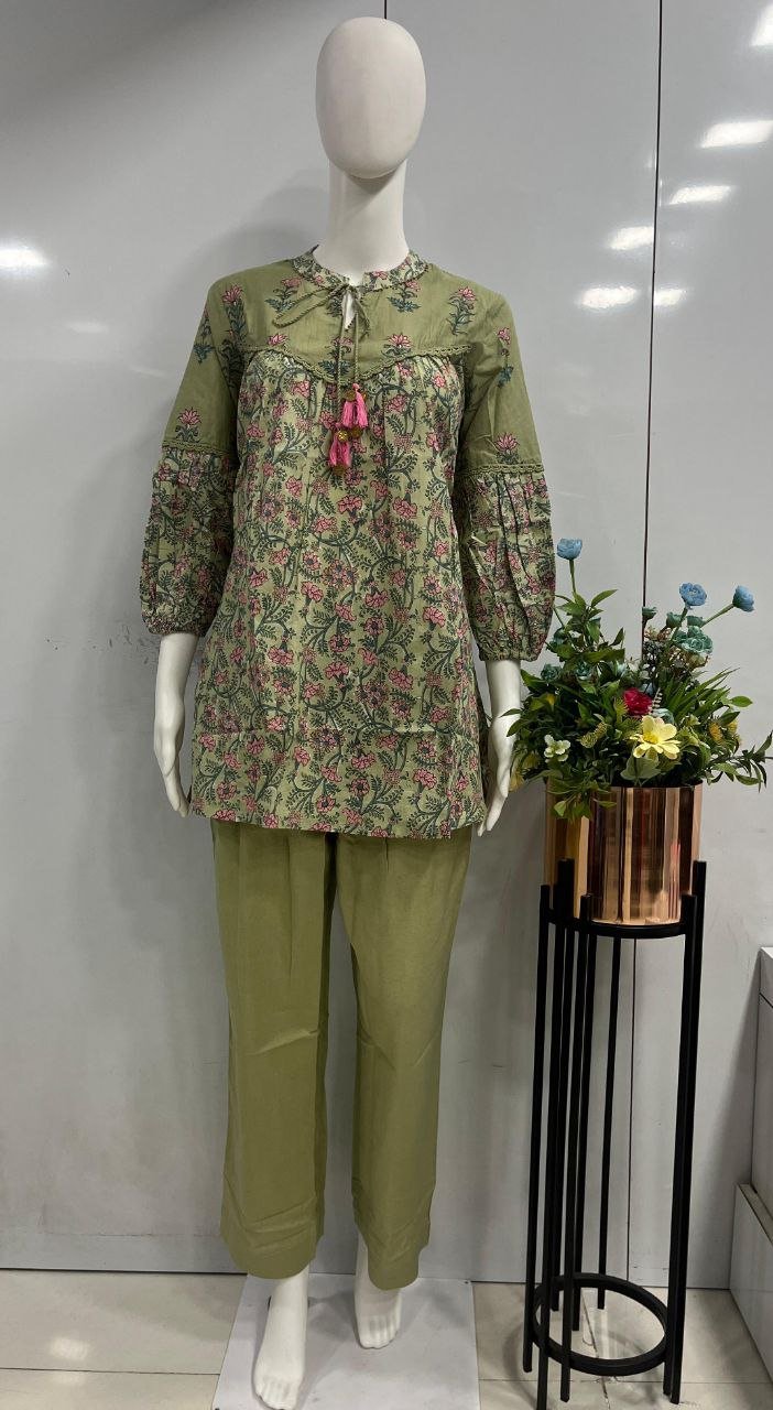 A Kurti-style top with pants in a pure cotton co-ord set sounds like a perfect blend of comfort and style! Pure cotton is breathable, soft, and ideal for all-day wear, giving you a relaxed and chic look. Here’s how you can style.