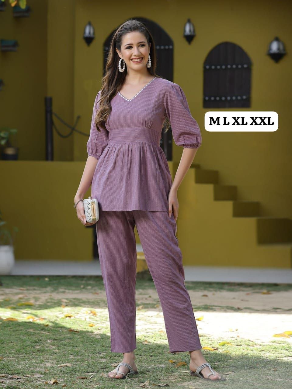 Woven Cotton top and pant with embroidery on neckline. Pair it with flats or heels to flaunt yourself.*