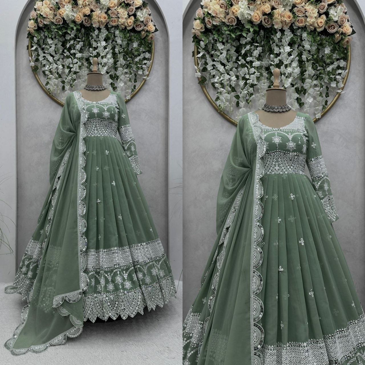 Looking for this same colour beautiful Designer Suit on Faux Georgette febric with Inner and 9MM Sequnce With Thred work and Pent on Crep Febric and Dupatta on also Faux Georgette febric with Lace work.