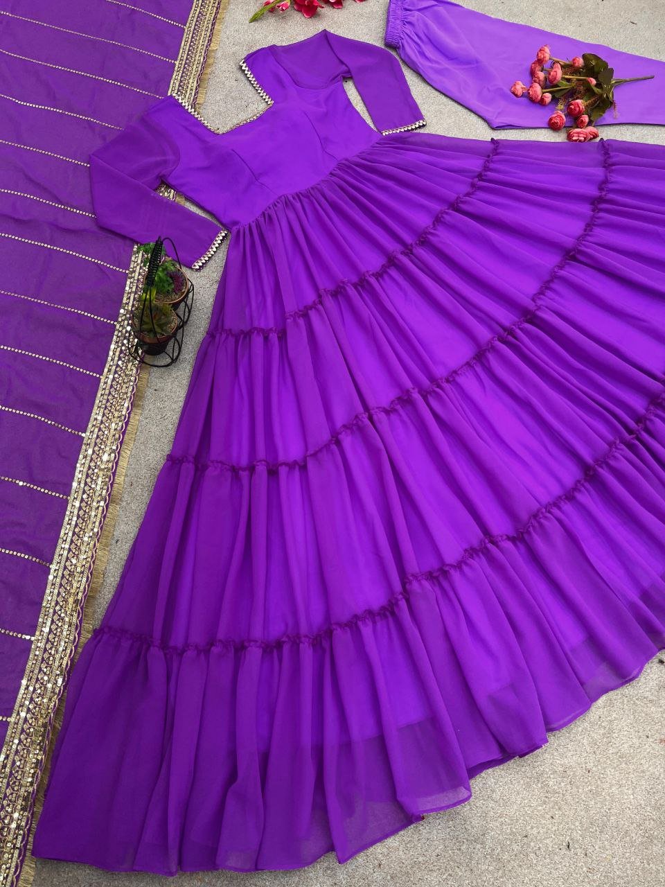 *Dupatta Fabric*: Heavy Georgette Embroidery Sequence Work and Heavy Lace Work