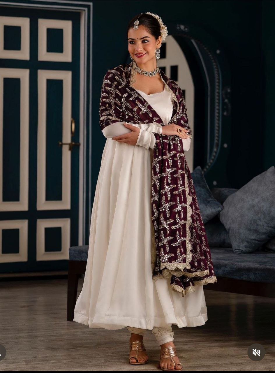 *Dupatta Fabric*: Heavy Fox Georgette With Hevvy 5mm Siqwans Embroidery Work With Full-Stitch