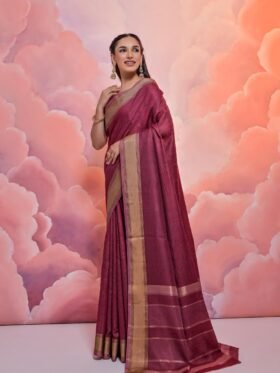 SAREE-SOFT RESHAM SILK SMALL BUTTI WEAVING PATTERN AND ZARI WORK SAREE