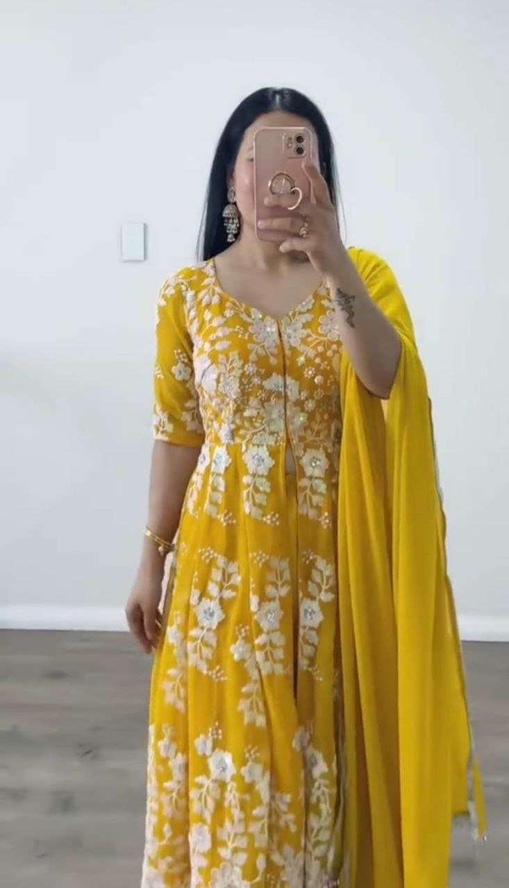 *Top Fabric* :Faux Georgette With *Full Heavy Embroidery Sequence Work With Fancy Style Cut* with Full Sleeve*