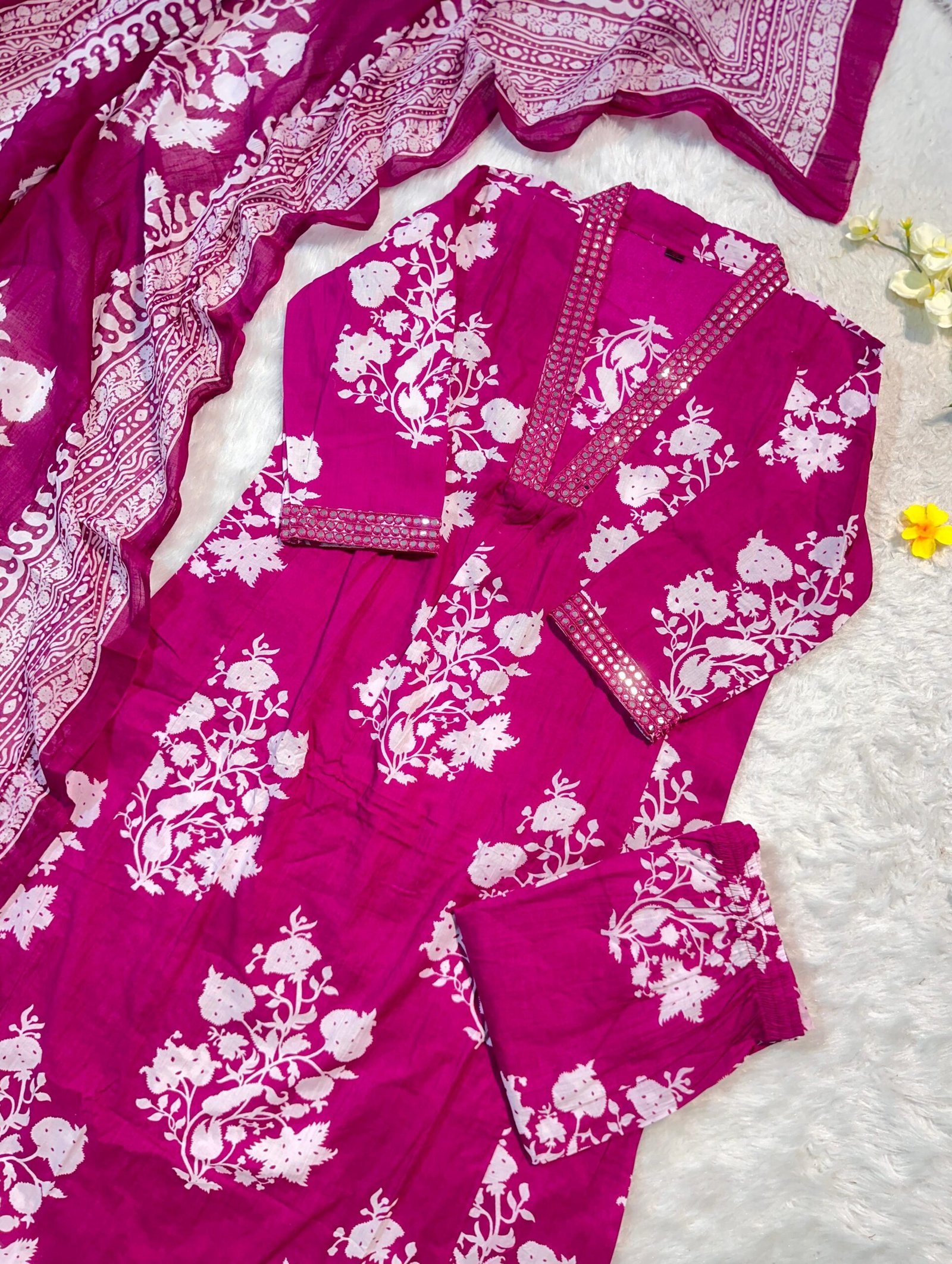 💞 KURTI PANT WITH DUPATTA💞 ✂Size :S(36)-M(38)-L(40)-XL(42)-XXL(44) Colour_pink