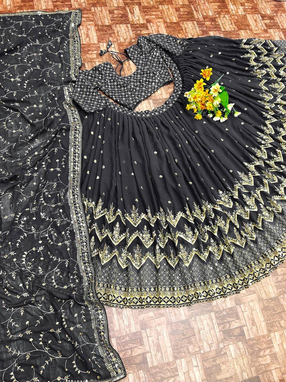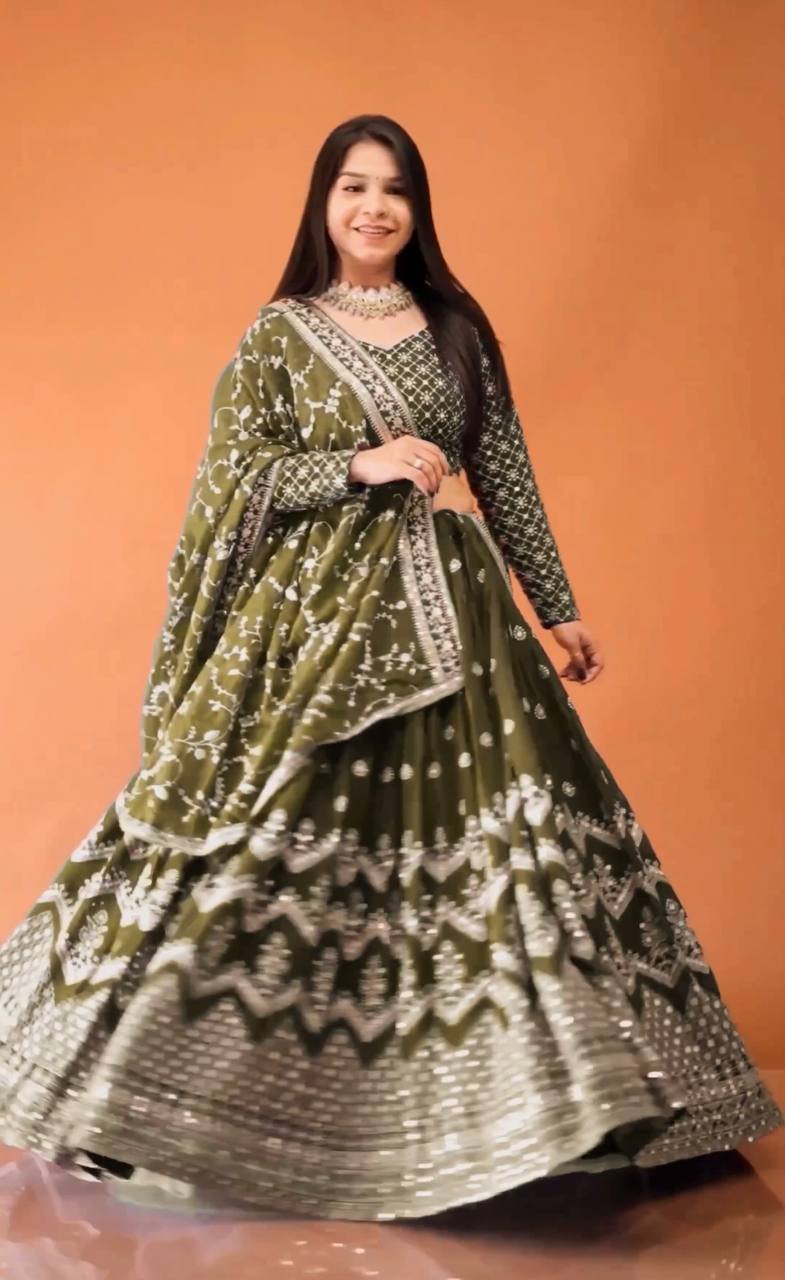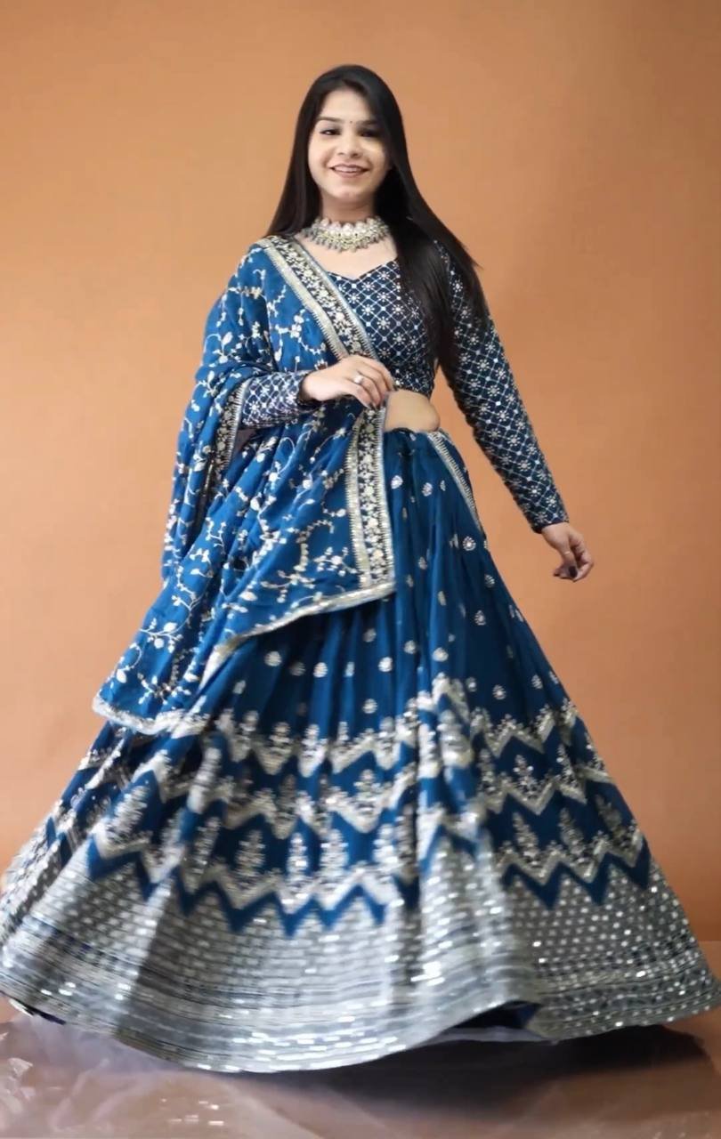 Lehenga Choli- Faux Georgette Silk Fabrics with sequence embroidery with zari work.