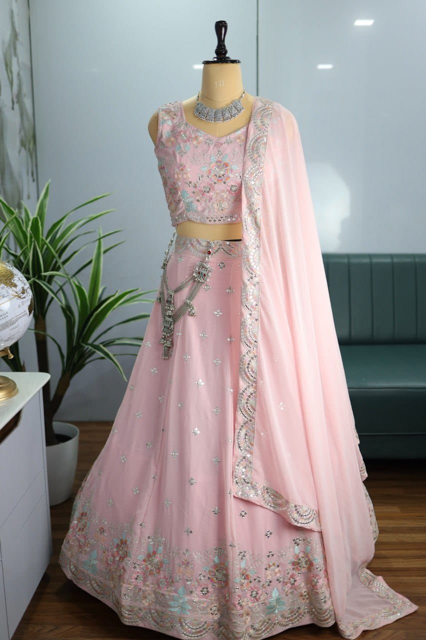 Lehenga Choli- Faux Georgette with Sequence Zari Work Lehenga And Sequence Zari Thread Embroidery Thread Work