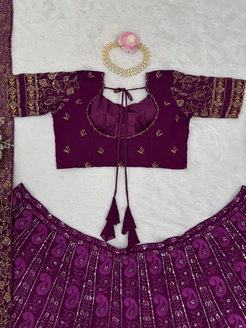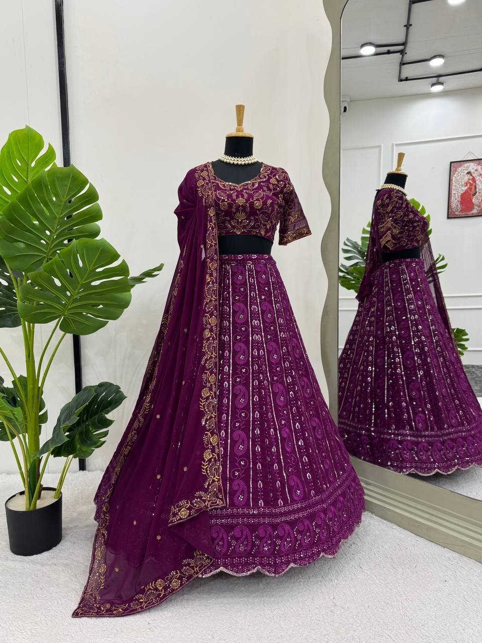 Lehenga Choli- Foux gorgette Fabrics And Sequnce with thread Work Lehenga Choli