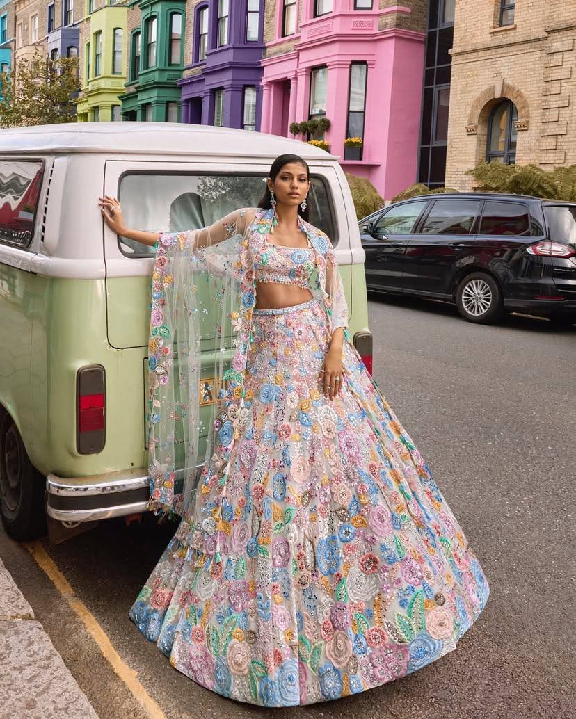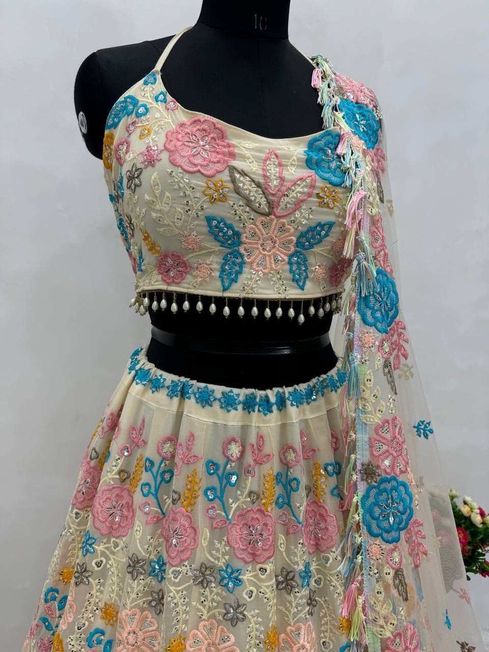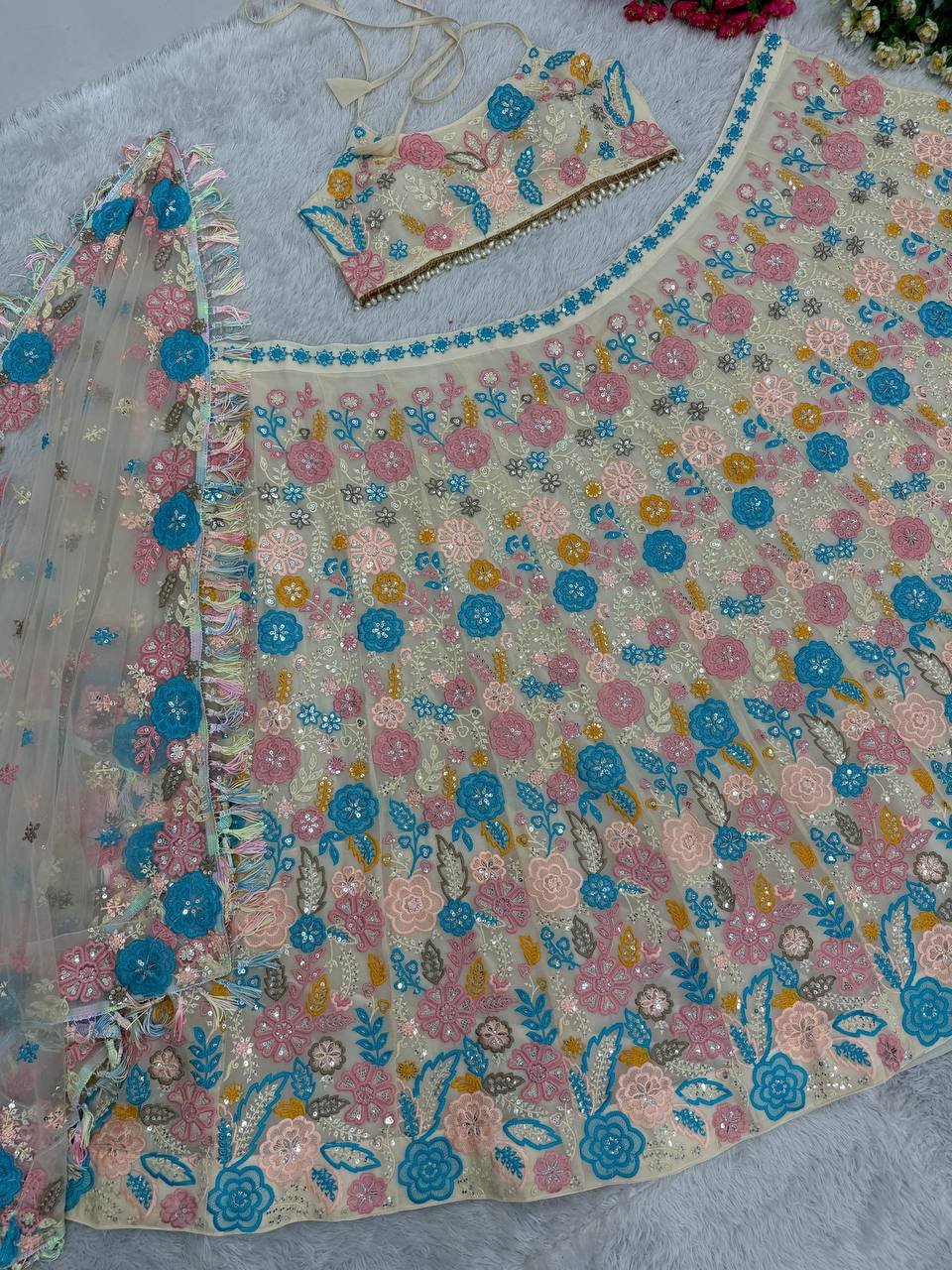 Lehenga Choli- HEAVY FUAX GEORGEET FABRICS AND HEAVY EMBROIDERED SEQUENCE WORK LEHENGA CHOLI