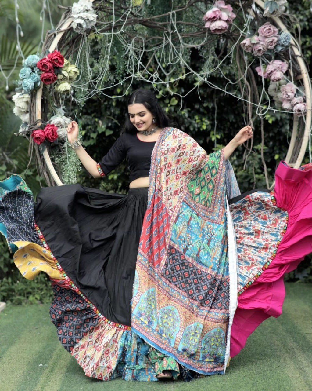 Lehenga Choli- Muslin Cotton Fabrics And Printed Lehenga With Real Mirror Work Dupatta