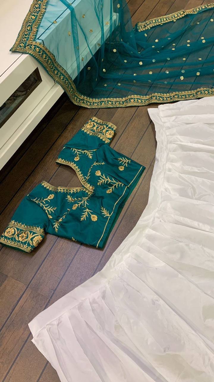 Lehenga Choli- Tapeta silk lehnga with pearl & embroidery work Lehenga With Net Duppata with sequnece & embroidery border work