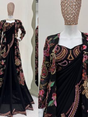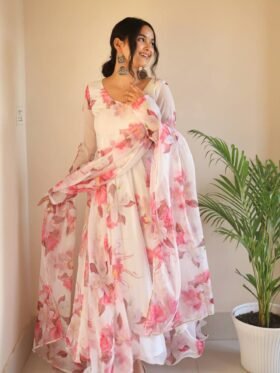 Kurti- Anarkali Flower print Grorgett with Work Dupatta And Lace