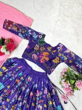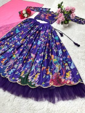 Lehenga Choli- Beautiful Embroidered Sequins on Printed Chinon Fabric with Frill Work Border Design Lehenga