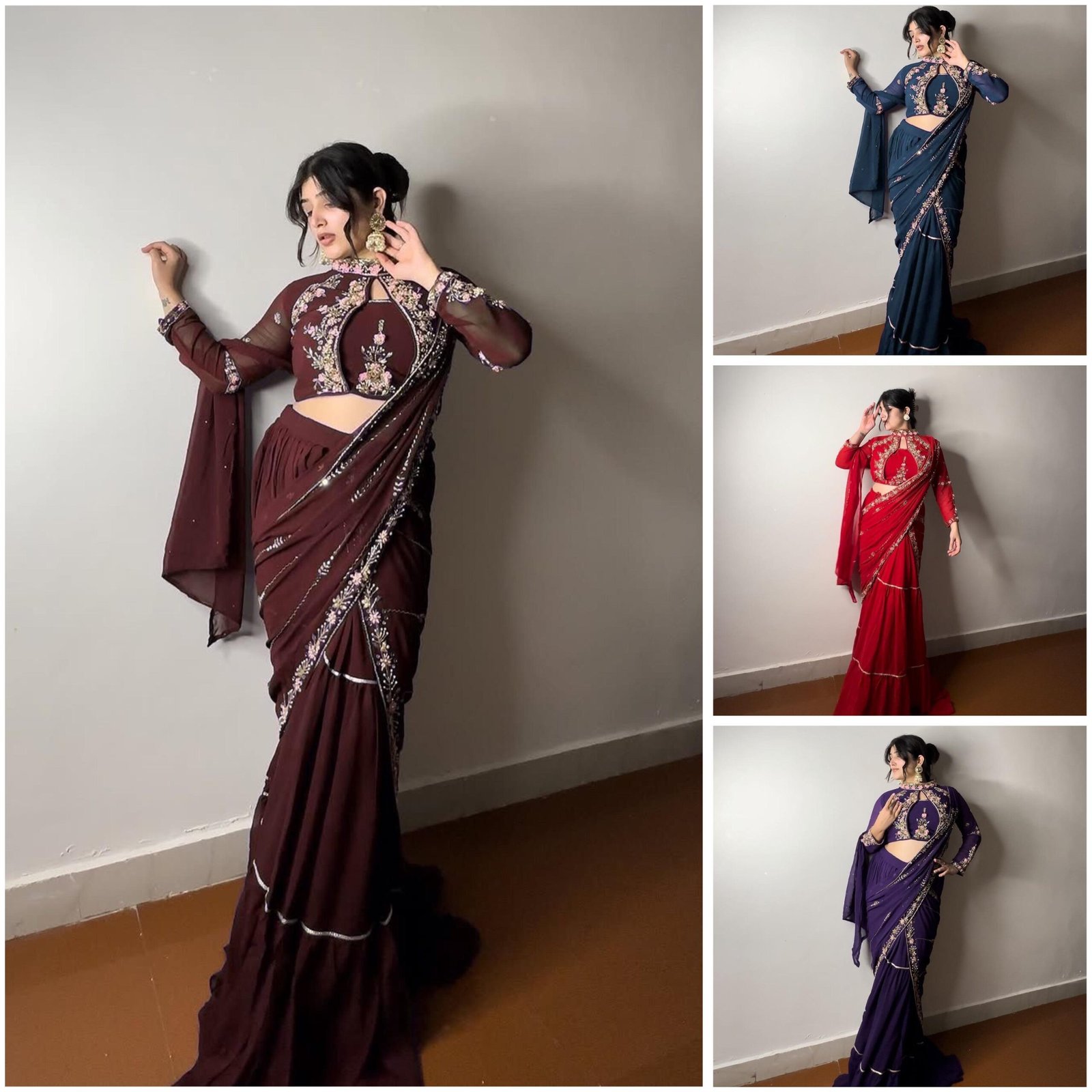 Lehenga Saree- FAUX GEORGETTE WITH RUFFLE AND EMBROIDERY WORK WITH MIROR WORK