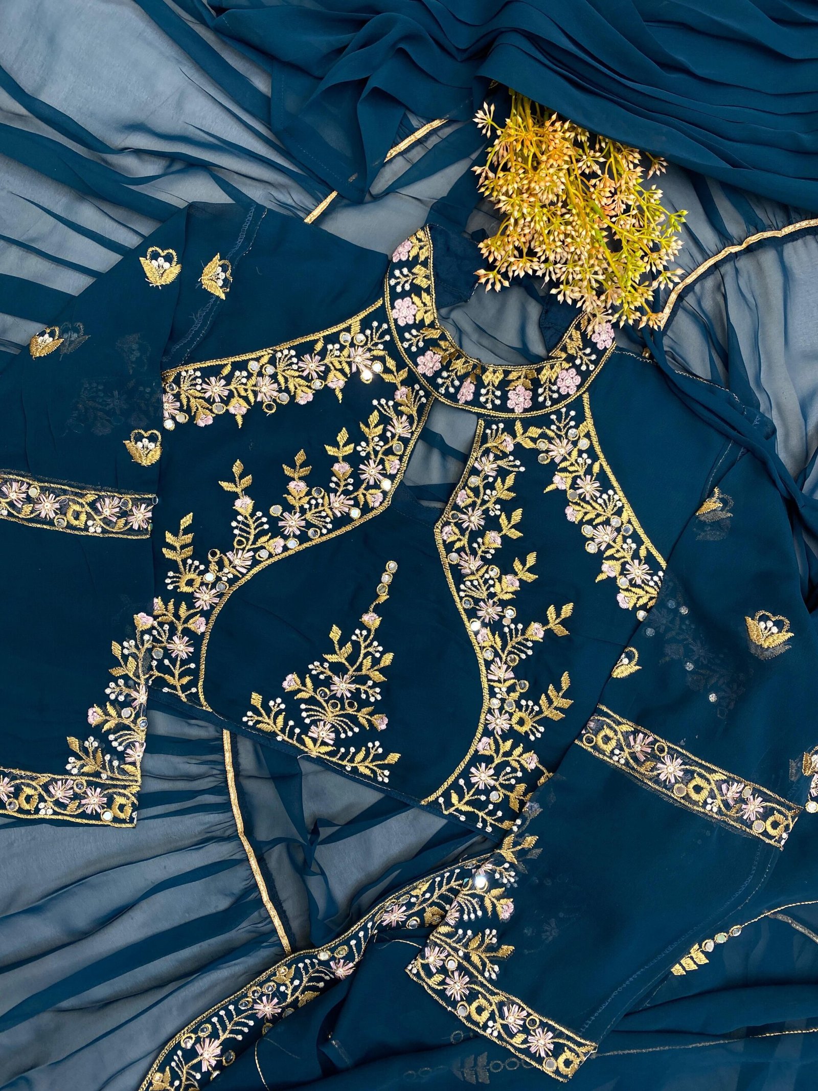 BLOUSE :Â FAUX GEORGETTE WITH SEQUENCE EMEBROIDERY WORK WITH MIROR WORK