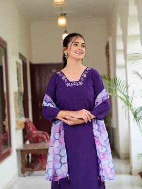 kurta set Embroidered Rayon Slub Colour-WINE SIZE : ,S , M , L , XL , XXL